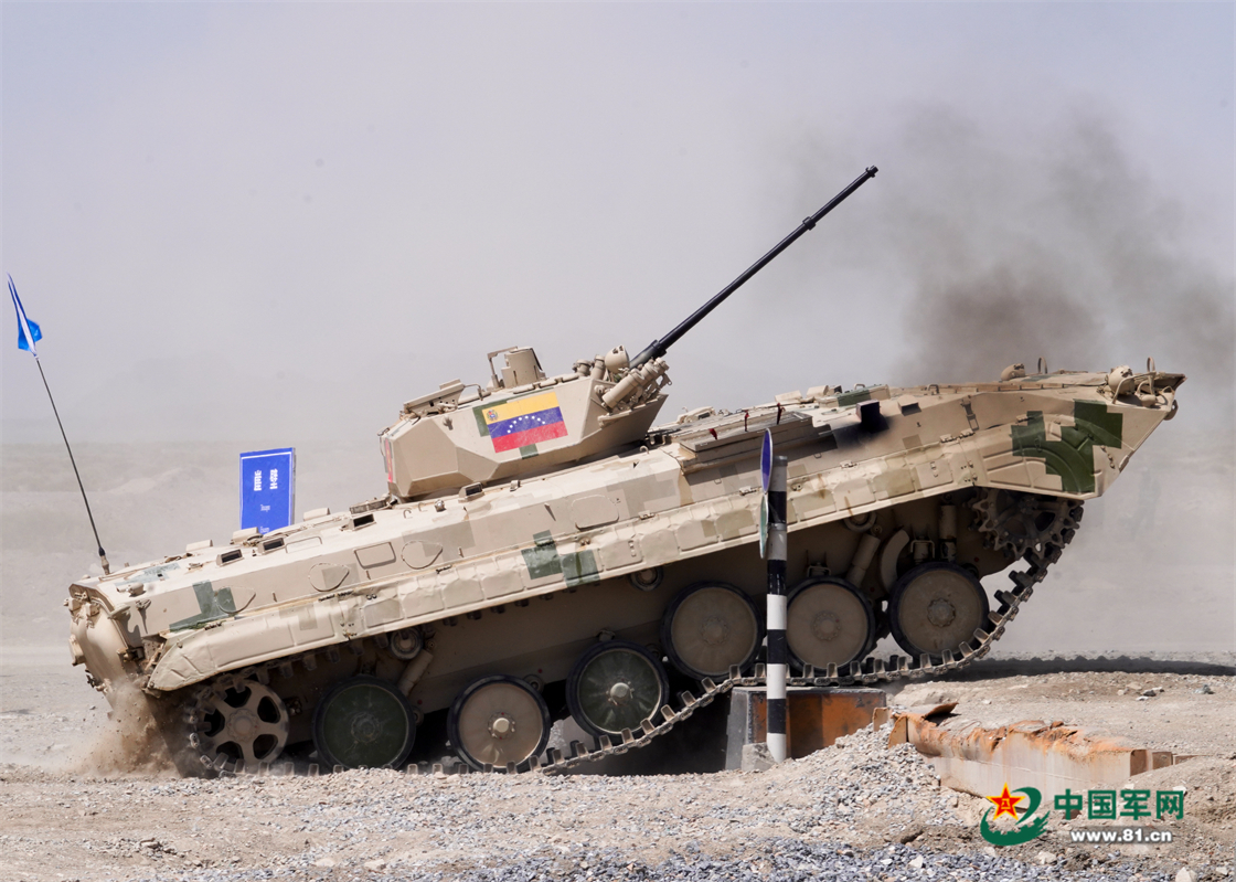 委内瑞拉参赛队员驾驶步战车通过崖壁障碍。栾铖 摄