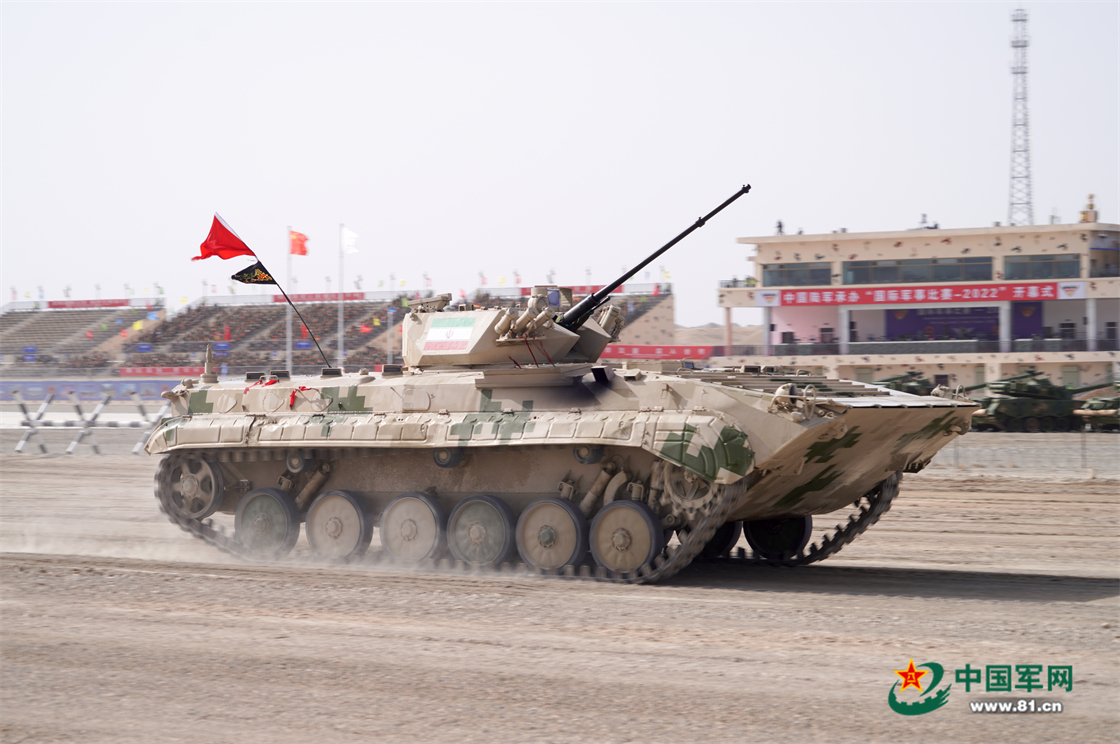 伊朗参赛队员驾驶步战车通过观礼台。张广东 摄