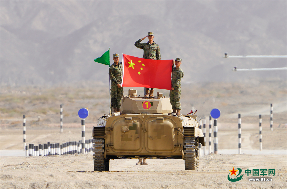 8月14日,“国际军事比赛-2022”中国库尔勒赛区进入首个比赛日,以赛道难度大和射击要求高而闻名的“苏沃洛夫突击”项目率先展开竞逐。来自中国、俄罗斯、白俄罗斯、伊朗和委内瑞拉5个国家的6个车组展开激烈角逐。