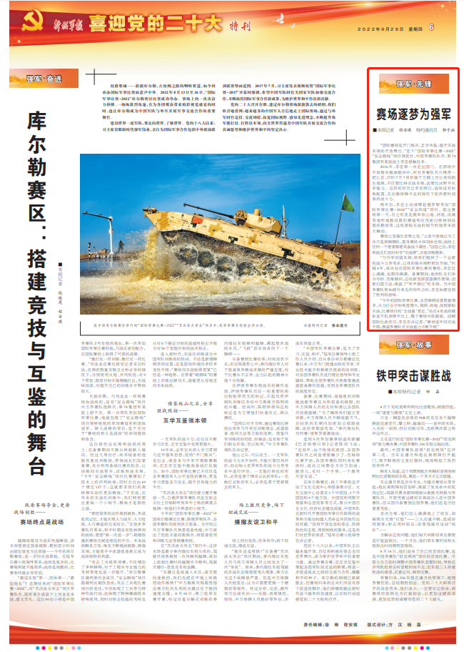 “国际赛场是开门练兵、互学共鉴,提升实战本领的开放舞台。”走下“国际军事比赛-2022”“安全路线”项目领奖台,中国参赛队队员、第74集团军某旅战士李恋感触良多。