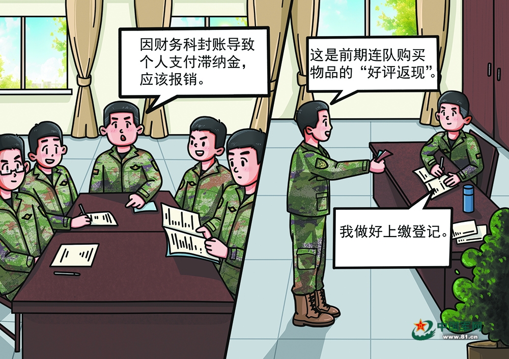 “返利因公款所得,应当视作公款。”得到答复后,他赶忙向小徐现场说法,小徐当即将返利获得的20元钱作为公款上缴连队。
