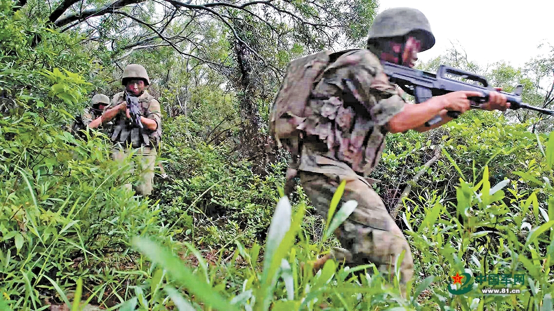 该旅官兵在丛林中搜索前进。张飞跃摄