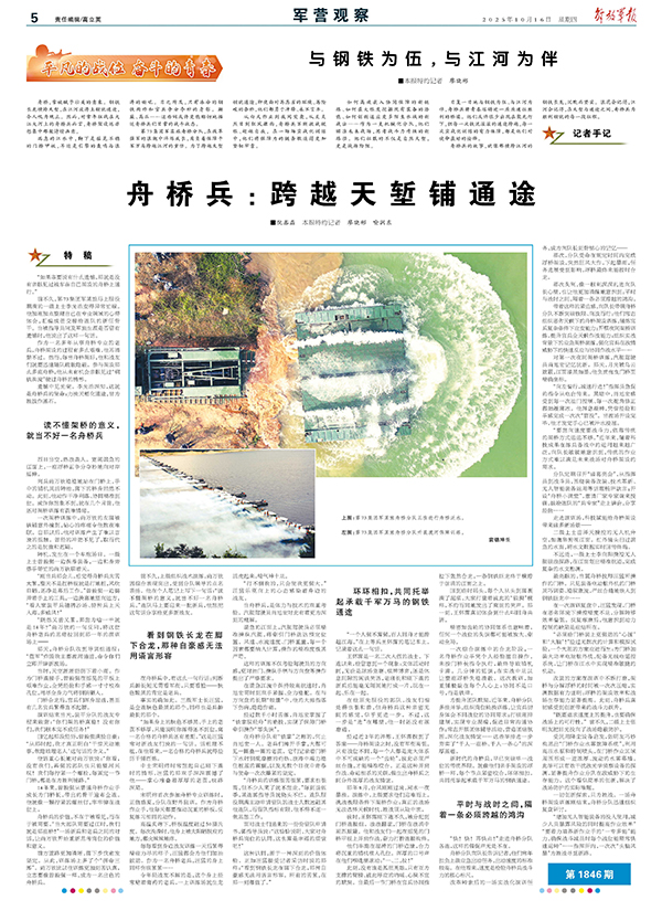 日复一日地与钢铁为伍、与江河为伴,舟桥兵将青春熔铸进一座座通往胜利的桥梁。他们或许很少出现在聚光灯下,但每一次铁流滚滚的通途跨越,每一次实战化训练的有力保障,都是他们对使命最好的诠释。