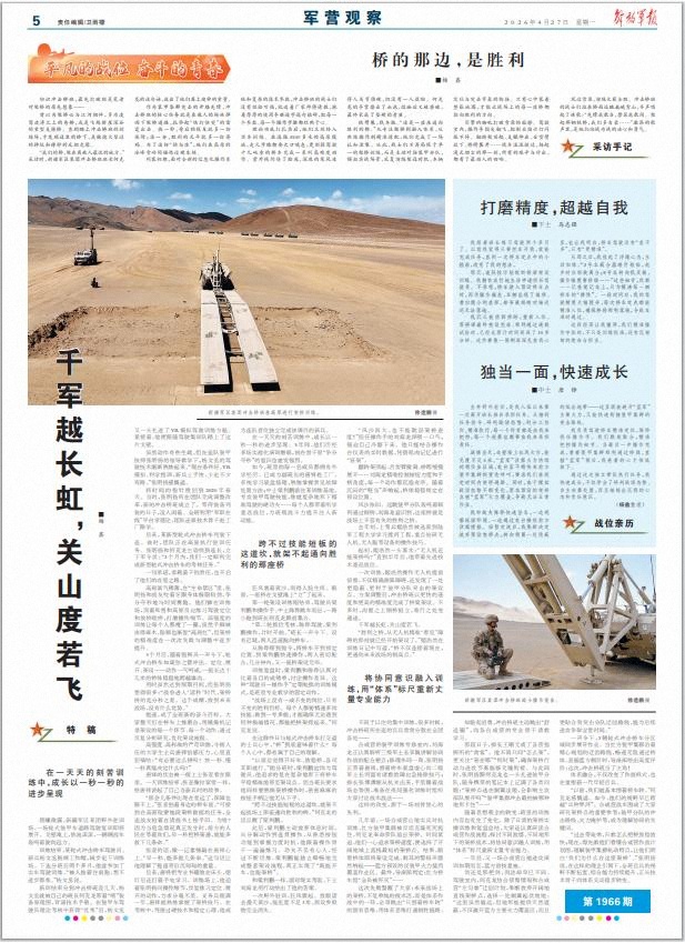 “战场上没有一成不变的岗位,只有不变的胜利目标。每个人都要精通多岗技能,做到一专多能,才能确保无论遇到何种极端情况,都能把桥架得起来。”何克龙说。