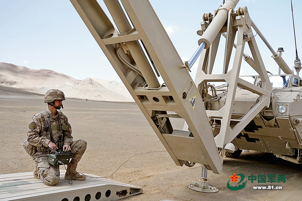 新疆军区某团冲击桥班战士操作装备。徐造鹏 摄