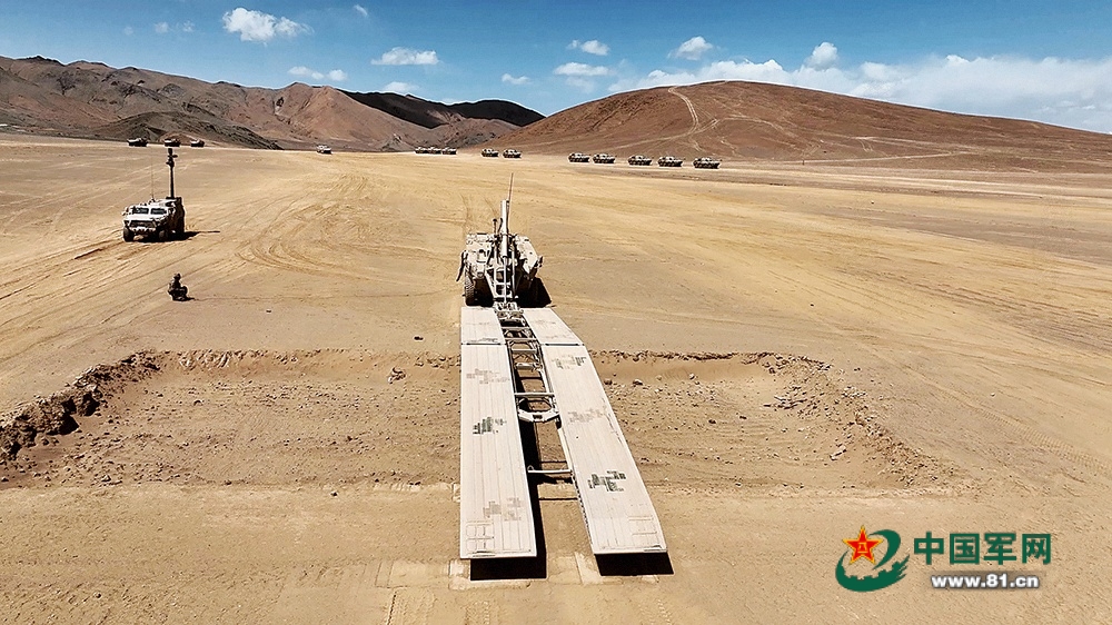 3个月后,随着指挥员一声令下,轮式冲击桥车如离弦之箭冲出。定位、展开、架设……动作一气呵成,一座长达十几米的桥体稳稳地跨越壕沟。