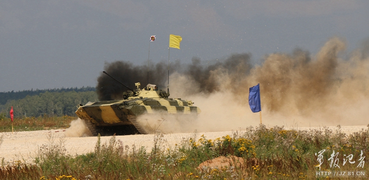疾驰中的俄军步战车。