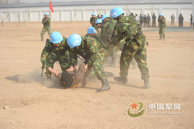 千钧一发之际,应急分队赶到事发地域,成两路纵队对我运送给养物资车辆实施保护,“STOP(停止)!STEP BACK(后退)!”。“哒!哒!哒!……”巴基斯坦快反部队抵达事发地域,鸣枪警告并驱散拦截人员,对仍负隅顽抗的人员进行缴械,尼泊尔宪兵队此时也已赶到,将被控制人员实施抓捕…