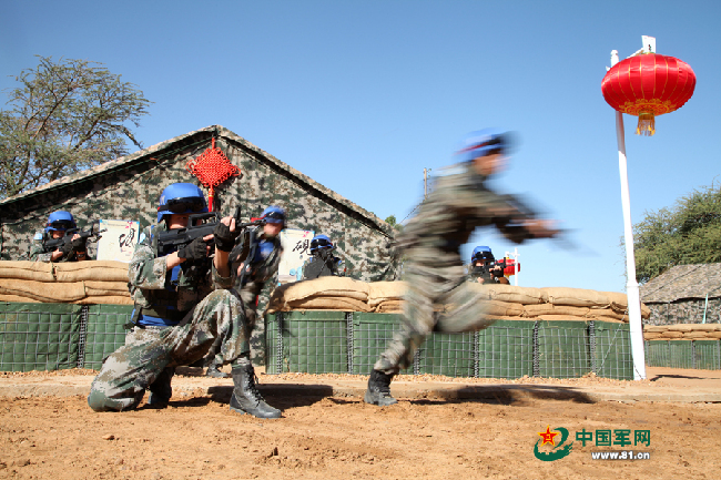 资料图:春节期间,首批赴马里维和警卫分队进行应急处突演练。杨华文 摄