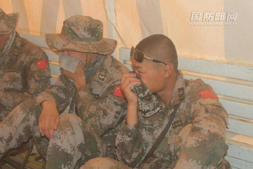 有时候沙尘暴来了,官兵们就到车里休息一会儿。即便如此,无孔不入的沙尘,还是会落满全身。