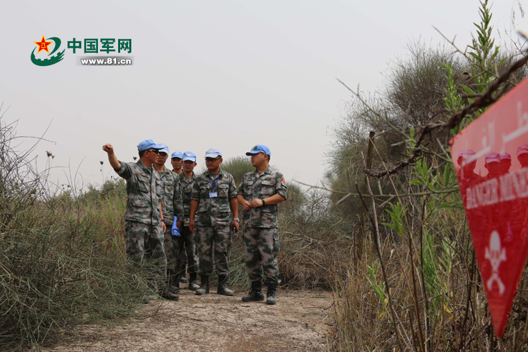 第14批赴黎维和部队指挥长孙志(右1)顶着风沙,视察作业情况。叶洋萍 摄