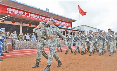 联利团举行的授勋仪式上,我维和官兵进行分列式。