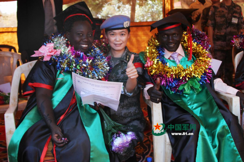 张夏莲护士长与南苏丹当地护理学校毕业学生在一起。
