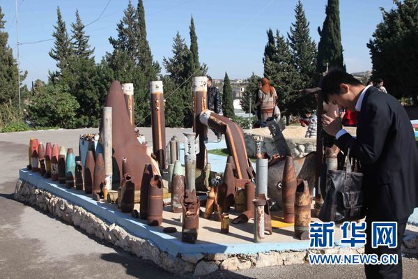 旅居黎巴嫩的华人华侨参观展出的炸弹。刘顺 摄
