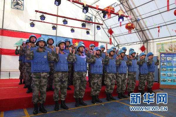 在中国新春佳节临近之际,旅居黎巴嫩的华人华侨、中资机构代表、留学生、黎巴嫩大学汉语专业师生等一行40人17日驱车前往黎南部中国赴黎维和部队营区,与维和官兵共同举行迎新春联欢活动。