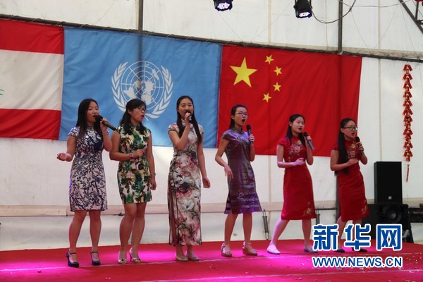 在联欢活动上,维和官兵和华人华侨表演了精彩的节目。维和官兵的锣鼓表演首先登场,赢得了观众阵阵掌声。接着,维和官兵表演了大合唱 《蓝盔之歌》,这首由他们自己创作的歌曲铿锵有力,唱出了维和勇士头顶蓝盔肩扛国旗,为了使命奋不顾身,为了和平不畏艰险的铮铮誓言。刚开设不久的黎巴嫩大学汉语专业的师生用流利的汉语表演了赞扬维和官兵的诗朗诵并演唱中国歌曲,在黎巴嫩的中国留学生也演唱了歌曲。最后,维和官兵和华人华侨大合唱《歌唱祖国》,把联欢会推向高潮。