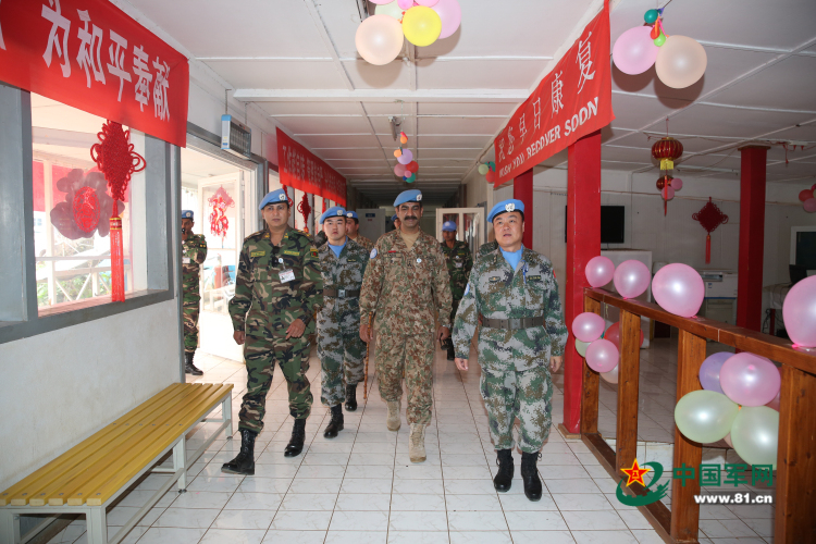 春节期间,联刚稳定团新任参谋长卡迪尔准将视察医疗分队。覃腾先摄