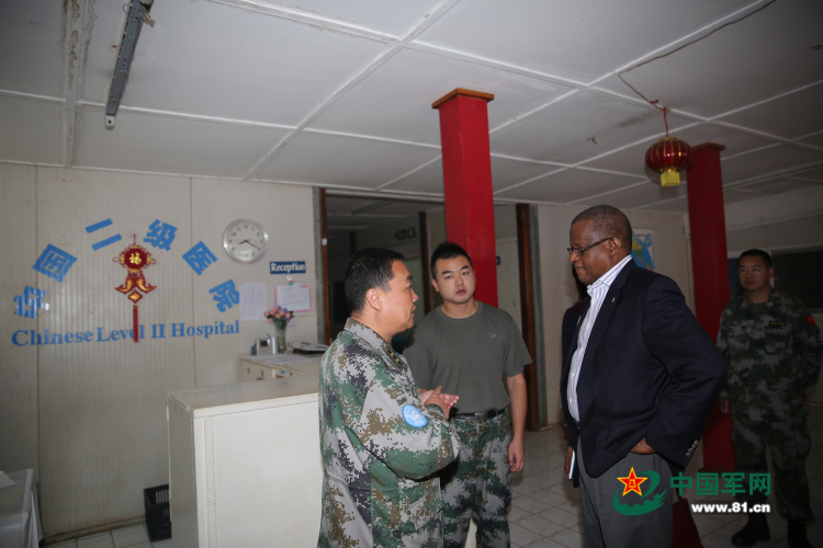 分队长胡华向特别代表介绍医院情况。覃腾先摄