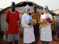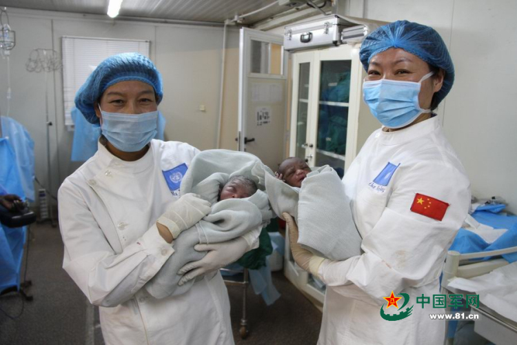 春节期间,我第14批赴南苏丹(瓦乌)维和医疗队接生了龙凤胎“吉祥”“如意”,这是在手术室陈永红、马玉红两位护士长抱着小宝宝。孙浩 摄