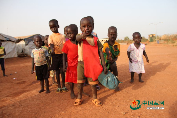 小朋友们向维和医疗队队员们竖起了大拇指。