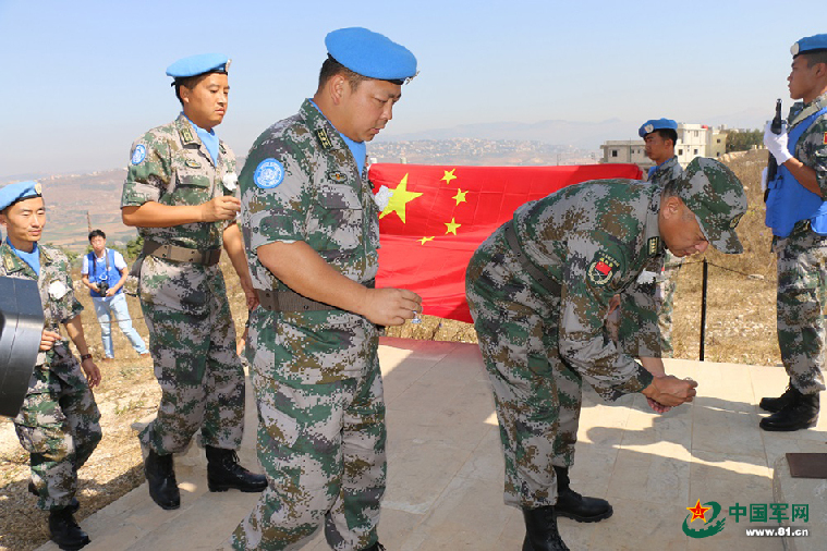 我赴黎维和官兵祭奠维和烈士杜照宇。叶洋萍