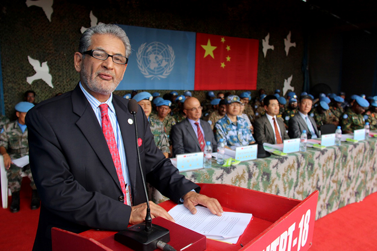 5月6日,在利比里亚首都蒙罗维亚,联合国秘书长特别代表法里德·扎里夫在授勋仪式上致辞。李祥东摄