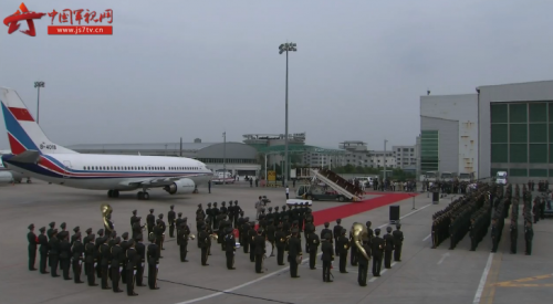 天空湛蓝,飞机洁白,礼兵身着橄榄色礼服。棕红色灵柩上方,覆盖着五星红旗,对于一名共和国军人来说,这是最高的荣誉。