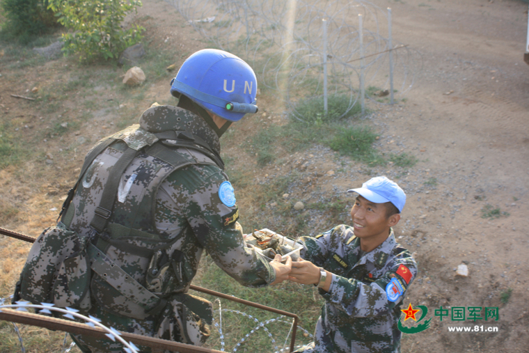 热腾腾的粽子出锅了,为了让坚守岗位的战友们第一时间吃到美味的“维和粽”,营连主官分赴各哨位,将粽子送到执勤官兵的手中。淡淡的竹叶清香、甜甜的蜜枣豆沙,一个个香甜的粽子不仅化解了执勤的疲惫,也吸引了哨位附近的联合国友人。当剥开层层粽叶,露出里面白白的糯米时,UN House保安队长连称“Magical”(神奇),品尝完粽子之后,他还意犹未尽,向执勤官兵学习起粽子的做法,他表示要把这种美味的中国食物与他的家人分享。