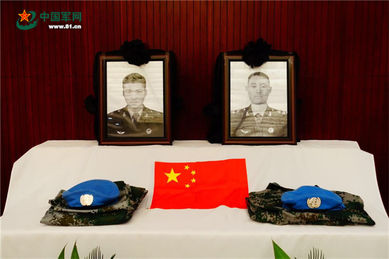 我南苏丹维和步兵营为李磊、杨树朋两位烈士举行追悼会