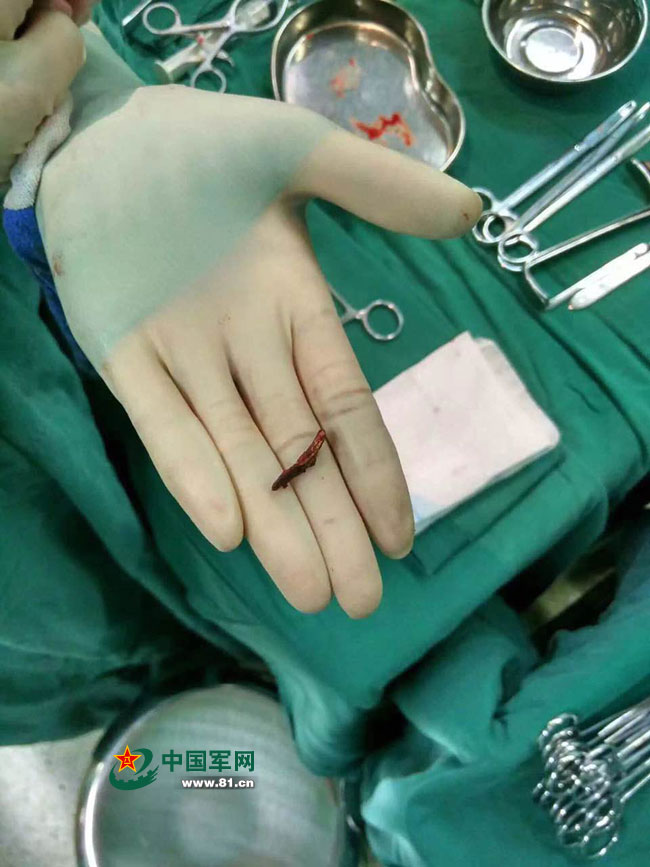 重伤战友陈英手术顺利,腿部取出2枚弹片