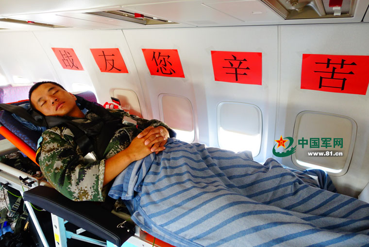 我赴南苏丹维和步兵营伤员姚道祥同机回国。