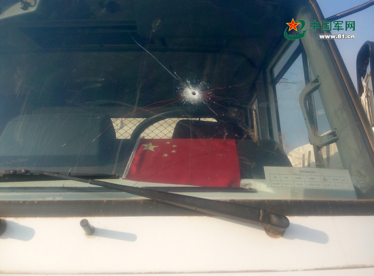 挡风玻璃被子弹穿透。冯福东 摄