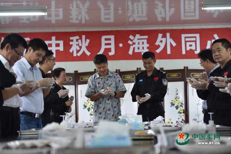 在首先进行的“月饼DIY”环节中,防暴队员与在利华人代表一起亲手制作月饼。虽然条件艰苦食材简单,参加活动的驻利华人却感触颇深。中利联投资(利比里亚)邦矿有限公司总经理李铁一激动地说:“长这么大,第一次亲手包月饼,还是在国外,感谢防暴队给我们创造了机会。”重庆对外建设(集团)有限公司副总经理杨泽涛说:“通过这次活动,我切身体会到了防暴队员艰苦奋斗的优良作风和甘于奉献苦中作乐的乐观主义精神,这不仅是一次活动,更是一次特殊的爱国主义实践教育。”