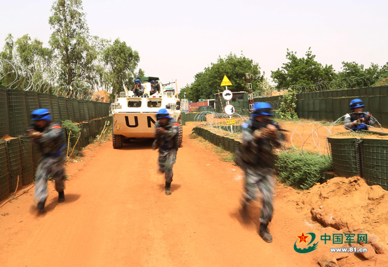 面对高温炙烤和恐怖袭击,中国蓝盔不畏艰险,时刻准备着。谢华 摄