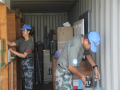 物资的规范化管理,分类、清理、建档是关键。队长刘延彤亲力亲为,带领全队人员整理库房,先后清理过期药品、食品、各类严重损坏物资30余类1000多种,并将所有物品归类存放,健全了出入库登记统计,建立了每周定期检查制度。自此,中国二级医院的每个库房都整齐规范,井然有序,账目清晰,减少了虫蛀、受潮、霉变、挤压等现象的发生。在联合国首次COE装备核查中,核查组人员对库房的管理频频称赞,正是得益于此。