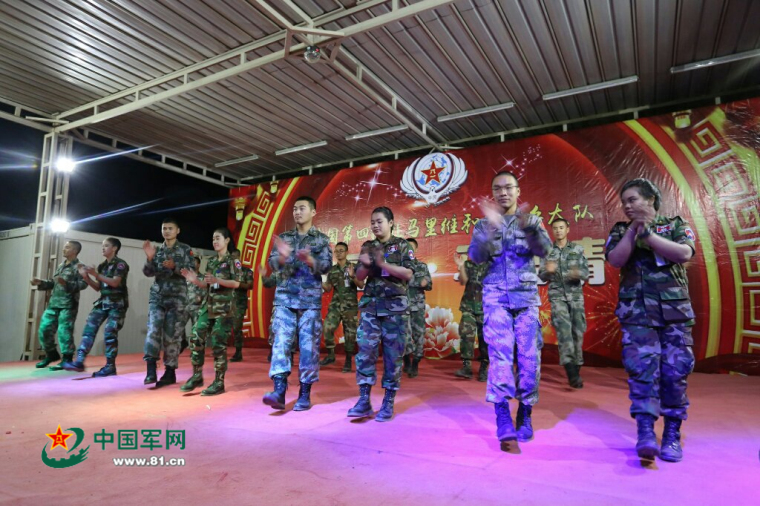 中柬两国维和分队官兵共舞庆祝新年到来。刘玉国 摄