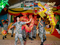 联欢活动在舞龙表演《画龙点睛》中正式开始,喜庆的音乐一下子将现场带到了节日氛围中。活动中,中国维和官兵的武术、变脸、藏舞等中国特色文化表演,让所有观众赞不绝口、掌声不断。巴基斯坦维和官兵则用独具民族特色的舞蹈、喜剧、情景剧等,使现场洋溢欢声笑语。巴基斯坦特种兵的武术表演,两国维和军人的拔河、抢凳子等互动游戏项目,将整个活动一次次推向高潮。