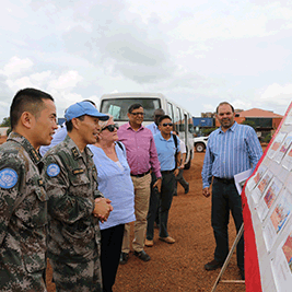 史蒂芬妮女士十分关心后勤基地生活设施的配套建设,得知不久前中国维和部队刚搭建完了54套板房,专程乘车前往搭建区实地了解情况,并围绕UN城外围实地查看中国升级改造的安全防护墙,对“中国速度”“中国质量”“中国标准”赞不绝口。