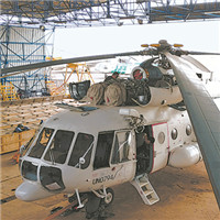 分队抵达苏丹后,维和官兵在检查直升机。中国维和直升机分队提供