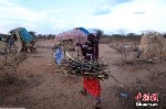 索马里Dollow,当地遭遇严重干旱,灾民用树枝搭建帐篷,每天都有很多人因干旱逃离家园。(图片来源:中国新闻网)