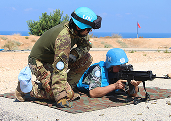 贝鲁特时间8月21日上午,中意赴黎维和官兵在联黎部队司令部射击训练场,开展应急防卫和医疗救援训练。维和