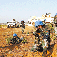 近期联合国制作了一批图片,介绍中国对维和行动的贡献,反映我维和官兵执行任务的出色表现。维和中国第四批赴南苏丹维和步兵营组织战备演练2018-05-16 10:21