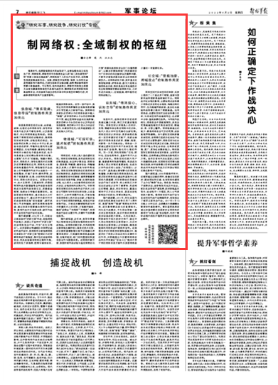 信息时代,在网络信息技术革命驱动下,全球治理体系正在发生广泛、深刻变革,网络空间作为信息社会人类“第二类生存空间”和“军事斗争第五维战场”,深刻改变了人们生产生活方式,也强制性地改变着战争形态。当前,网络空间在物理、信息、认知和社会各领域影响不断深化,已成为国家安全新边疆、战略博弈新领域和军事斗争新战场。可以预见,在未来战场上,网络空间既独立成域又全面支撑渗透陆海空天各维作战空间,制网络权将深刻影响国家战略安全,决定战场作战主动权的争夺和其他空间制权行动,对战争进程和结局产生重要影响。