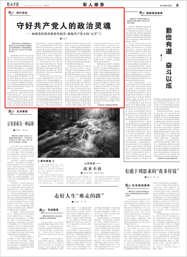 崇高的理想,坚定的信念,是中国共产党人的政治灵魂,是人民军队的精神支柱。在前不久召开的中央军委政治工作会议上,习主席总结回顾了我军新时代政治建军取得的历史性成就,深刻剖析当前政治建军需要解决的深层次矛盾和问题,强调指出,“这些问题表现在政治、思想、组织、作风、纪律等方面,根子在理想信念、党性修养、官德人品上”。习主席将理想信念方面的问题,摆在思想根子问题的首位予以强调,抓住了锻造忠诚干净担当、堪当强军重任的高素质干部队伍的根本和关键。每名党员干部都要把自己摆进来,认真对表检视自身理想信念有无滑坡动摇,严肃清除思想之弊、行为之垢,守好共产党人的政治灵魂。