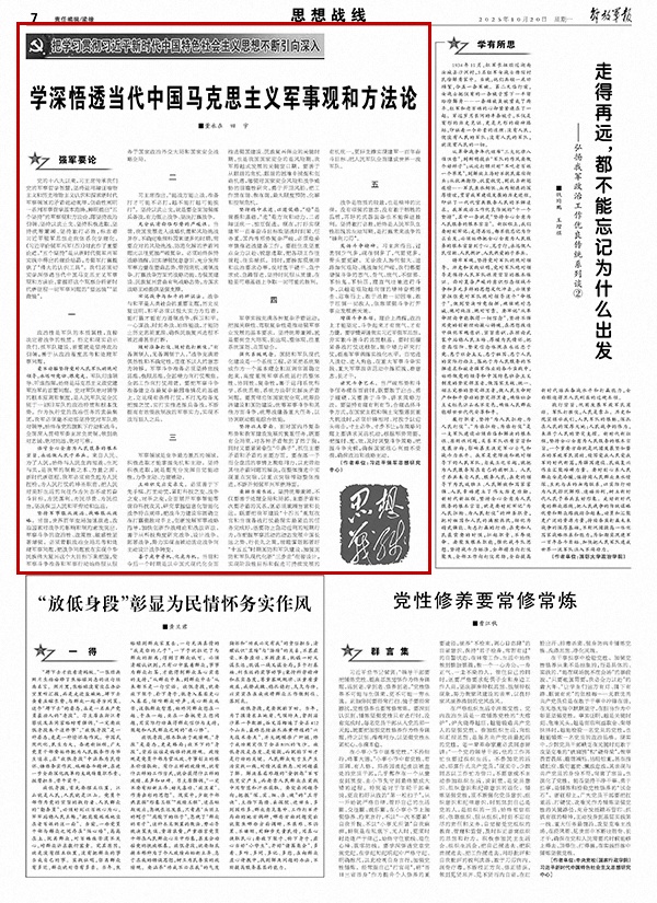 党的十八大以来,习主席传承我们党的军事哲学智慧,坚持运用辩证唯物主义和历史唯物主义认识和探索新时代军事领域的矛盾运动规律,创造性阐明一系列军事哲学基本范畴,鲜明提出“五个坚持”的军事观和方法论,即坚持政治引领、坚持以武止戈、坚持积极进取、坚持统筹兼顾、坚持敢打必胜,标志着习近平强军思想走向体系化学理化,《习近平论强军兴军(四)》对此作了重要论述。“五个坚持”是从新时代强军兴军实践中得出的理论结晶,为强军打赢提供了“伟大的认识工具”。我们必须切实学深悟透当代中国马克思主义军事观和方法论,掌握好这个观察分析新时代新征程一切军事问题的“望远镜”“显微镜”。