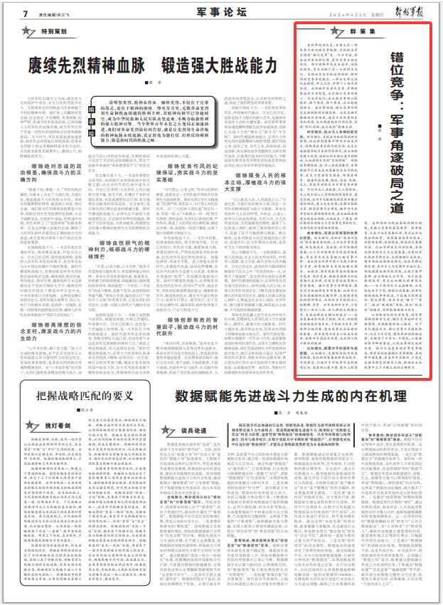 从生物演化的生存智慧,到军事领域的强军之道,错位竞争始终是突破困境、实现超越的核心路径。对于军队建设而言,错位竞争不是投机取巧,而是立足实战、聚焦创新的战略选择,关键在于不盲从、不跟风,以装备创新开辟新赛道,以战法革新打造新优势。面对日益复杂的军事竞争格局,唯有深刻把握错位竞争精髓,在创新中谋发展,在差异中求胜利,才能走出独具特色的强军之路,锻造出未来战争中立于不败之地的过硬战力。