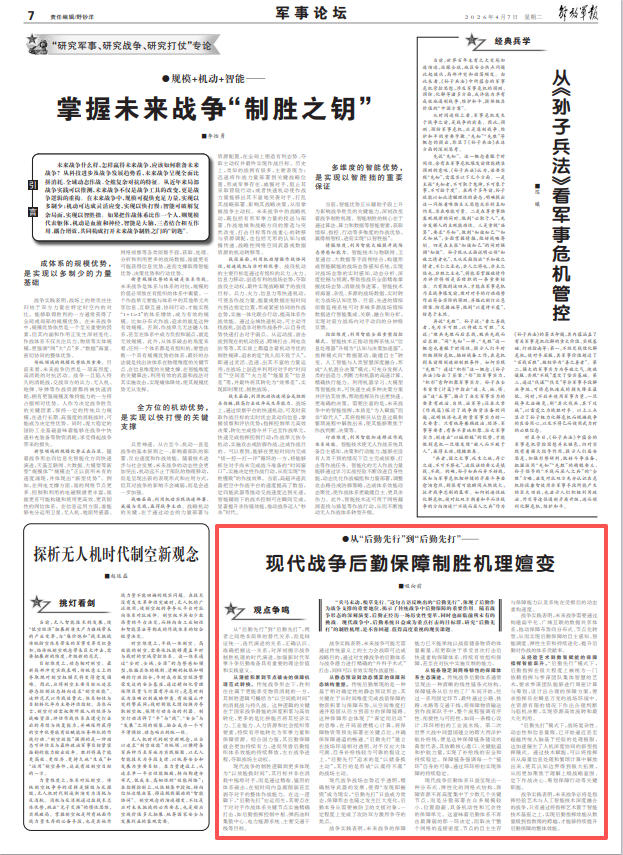 现代战争后勤保障制胜机理嬗变