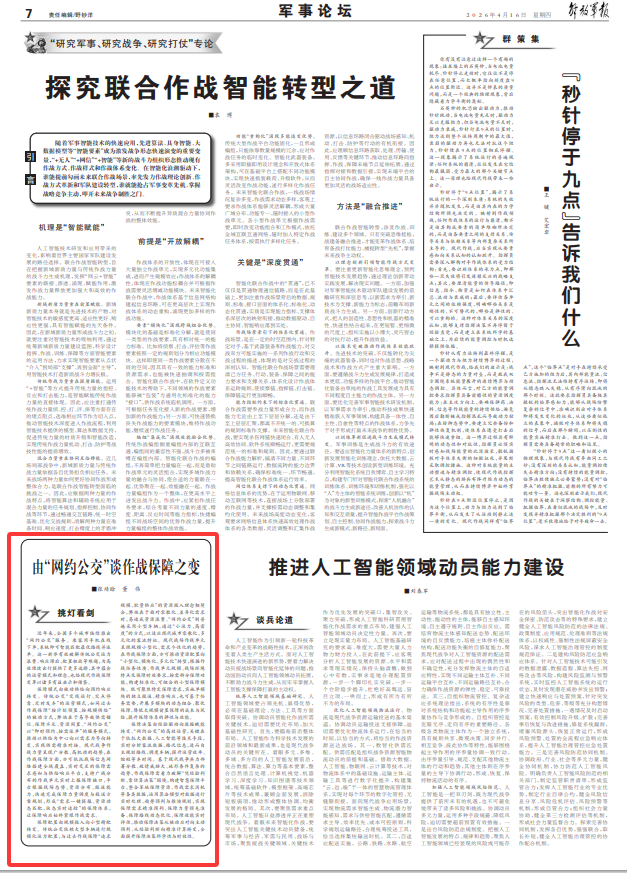 近年来,全国多个城市陆续推出“网约公交”服务。乘客用手机在线下单,系统即可智能匹配最优路线并派单。这一新举有效破解传统公交运力浪费、响应滞后、配置粗放等难题,为高效便捷出行提供了更多选择,其中蕴含的运营模式和理念,也给现代作战保障变革以诸多有益启示和借鉴。
