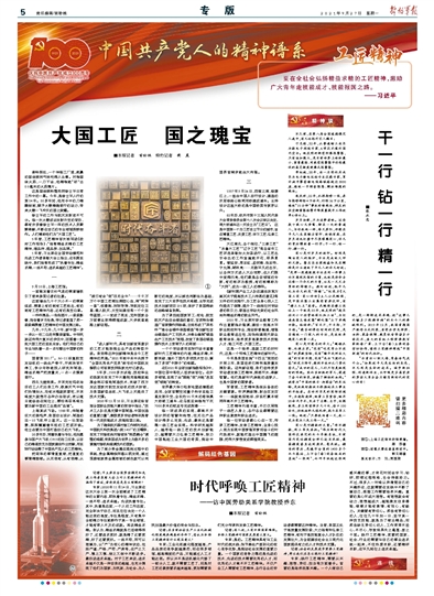 每一项成果的实现,都离不开设计师的智慧和构想,但无论产品设计得多么完美、先进,最终还是要靠一线工匠去实现。科学研究越深入,越考验一线工匠的技术创新能力,越需要大力弘扬工匠精神,助力中国挺起工业大国的脊梁,推动中国昂首阔步地由大向强。