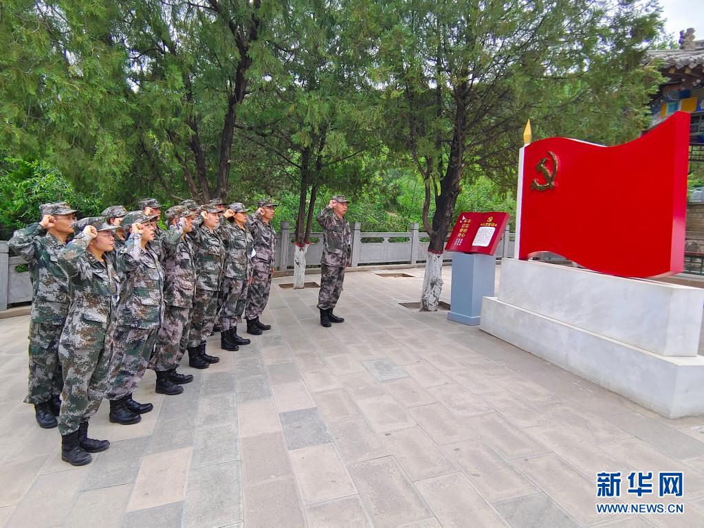 联勤保障部队第987医院在陕西省延安市巡诊期间组织队员到延安革命纪念馆重温入党誓词(6月2日摄)。新华社发(张红 摄)